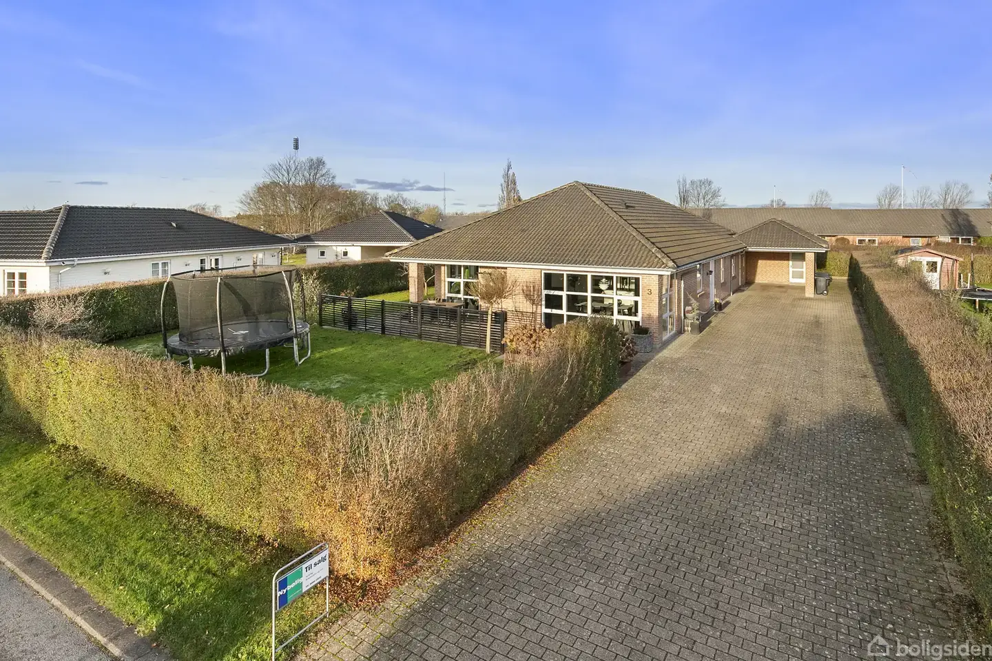 Velkommen til denne villa på 185 m² opført i 2009, beliggende på en grund på 910 m². Huset præsenterer sig flot med facader i røde mursten og et mørkt tegltag, som giver et solidt og tidløst udtryk. Den brede indkørsel med carport og skur skaber ekstra plads til parkering og opbevaring, mens de store vinduer i gavlen tilføjer både karakter og masser af lys til huset. Her får I et velindrettet hjem, hvor plads og funktionalitet spiller sammen med et roligt og familievenligt nabolag. Indretningen