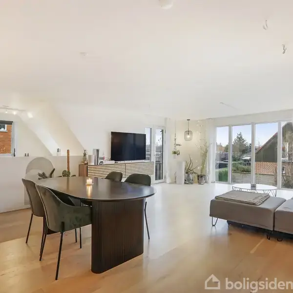 Velkommen til en skøn og særdeles indbydende villalejlighed (ideel anpart), hvor lys, plads og beliggenhed går op i en højere enhed. Boligen er beliggende på 1. sal i et flot hus på en meget rolig villavej og fremstår moderne og tidssvarende efter en gennemgribende renovering og tilbygning i 2018. I dag får du hele 114 veldisponerede kvadratmeter – perfekt til både par og familien, der ønsker det bedste fra både villa- og lejlighedslivet. Lejligheden har sin helt egen indgang i stueplan, hvor d