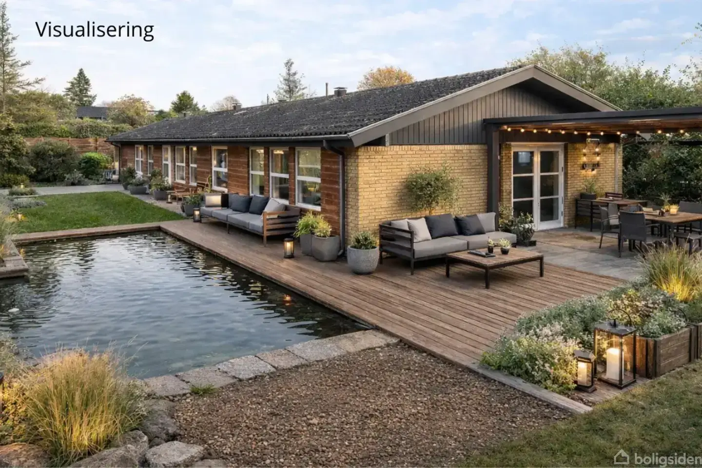 Unik villa med privat badesø og to boligenheder – Engstien 2A, Dragør Velkommen til Engstien 2A – en bolig ud over det sædvanlige. Her får I en charmerende og velholdt villa med to selvstændige boligenheder og noget så sjældent som Dragørs eneste private badesø. Søen fungerer som en naturlig pool, renses biologisk og er anlagt i et elegant, firkantet design – et eksklusivt udendørs element, der giver både æstetik og badeglæde året rundt. Hovedboligen byder på en stor, åben planløsning med stue