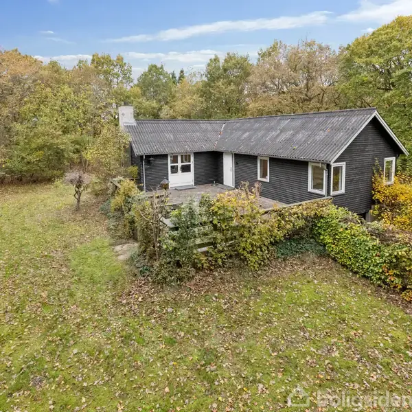 Charmerende og indbydende fritidshus på stor naturgrund ved Hegedal Strand, Fjellerup
