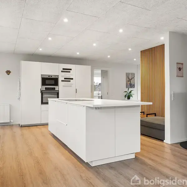 Velkommen til Engvej 39 i Aulum – en villa, der kombinerer moderne komfort, naturskøn beliggenhed og plads til hele familien. Her får I 194 veludnyttede kvadratmeter, hvor indretningen og udsigten går hånd i hånd. Fra haven kan I nyde synet af søen, de åbne marker, svanerne og de smukke solnedgange, mens børnene leger i haven eller på den lille, lukkede stikvej med trygge rammer og godt naboskab.Huset fremstår i flot, moderne stand efter en omfattende istandsættelse. Hele underetagen blev renove