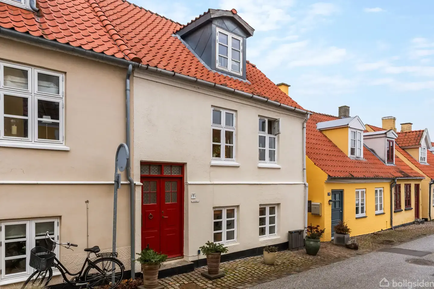 Midt i det stemningsfulde og eftertragtede Staldgaarden i Nykøbing F finder du dette sjældent udbudte rækkehus i tre plan, som emmer af charme, historie og hjemlig atmosfære. Her bor du centralt i byen – og alligevel tilbagetrukket – omgivet af små, hyggelige gader med brosten, der skaber en næsten landsbyagtig stemning midt i bylivet.Boligen byder på 126 veludnyttede kvadratmeter, der fremstår indflytningsklare og indrettet med respekt for husets oprindelige udtryk. De smukke originale detaljer