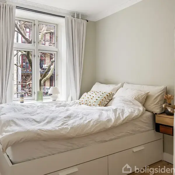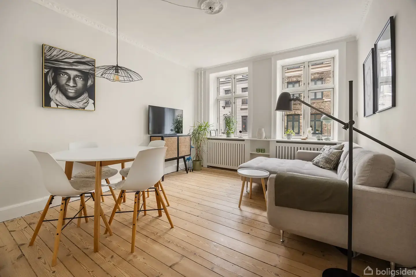 Trukket stille tilbage fra både Istedgade og Halmtorvet ligger denne klassiske københavnske ejerlejlighed. Her bor du centralt i et levende kvarter med specialbutikker, kultur og et utal af spisesteder – uden at gå på kompromis med roen.Lejligheden har en optimal planløsning, der gør den delevenlig med to store værelser. Stuen byder på god plads til både spiseområde og et hyggeligt sofahjørne, og de store dannebrogsvinduer lader dagslyset strømme ind. Vinduesvæggen er smukt udført med elegante r