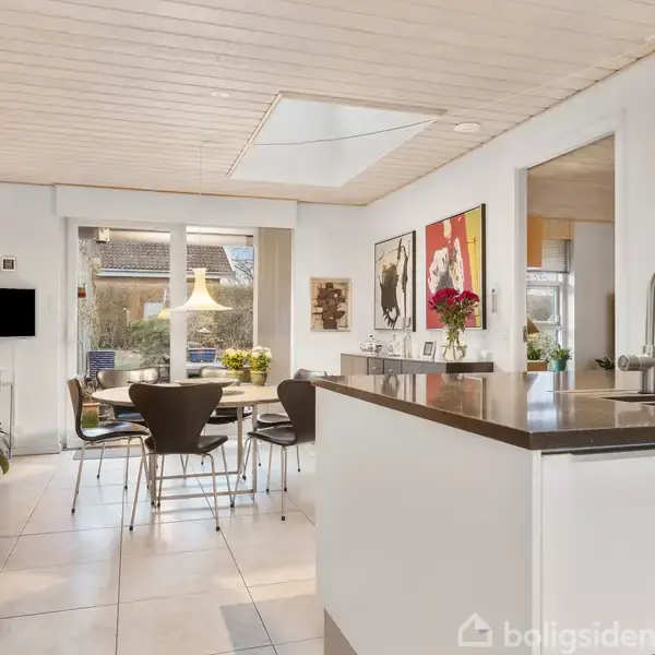 På en stille villavej i det eftertragtede Romalt, tæt på grønne områder og legeplads, ligger denne velindrettede og løbende moderniserede villa fra 1978. Boligen rummer 131 særdeles veludnyttede kvadratmeter i ét plan og fremstår som et oplagt valg for familien, der ønsker en tryg beliggenhed kombineret med moderne energiløsninger. Villaen byder på en entré med klinkegulv og adgang til husets naturlige samlingspunkt – det store og indbydende AUBO køkken/alrum. Her er god plads til både hverdag og gæster, og de to Velux ovenlysvinduer med regnsensor giver et behageligt og naturligt lysindfald. Fra køkken/alrummet er der direkte udgang til haven. Den vestvendte stue er lys og indbydende med brændeovn og god plads til ophold. Her kan aftenerne nydes med udsigt til haven og aftensolen. Boligens værelsesafdeling består af et soveværelse med direkte adgang til badeværelset samt to gode og regulære børneværelser. Hertil kommer et praktisk bryggers med vaskesøjle og god skabsplads. Ejendommen er løbende opdateret. I 2012 blev både tag og vinduer udskiftet, herunder ovenlysvinduer, og taget er udført som et elegant listetag. I 2022/2023 er villaen energioptimeret med solceller og luft-til-vand varmepumpe, hvilket sikrer en tidssvarende og økonomisk opvarmning. Haven er lukket og indbydende med gode opholdsarealer. Et flot sort orangeri med flisegulv skaber et ekstra uderum, som kan benyttes store dele af året. Her er der plads til gæster og hyggelige stunder, og den indbyggede Morsø pizzaovn bidrager både med varme og stemning. Til ejendommen hører en 43 m² stor carport/garage med Troldtekt-lofter samt en praktisk kartoffelkælder. En velholdt, energirigtig og funktionel etplansvilla med attraktiv beliggenhed i Romalt.
