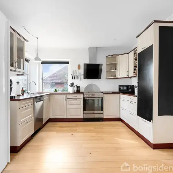 HER ER PLADS TIL HELE FAMILIENRummelig villa med smukt glaseret tegltag - beliggende i Harte med kort afstand til motorvejsnettet, skole, fritids- og sportsfaciliteter og indkøb.Villaen er i 3 plan og byder på lys entre med trappe til 1. sal, gæstetoilet, stor opholds- og spisestue med brændeovn og udgang til stor sydvestvendt terrasse. Fra stuen dobbelt dør til værelse/stue eller kontor med udgang. Åbent forbindelse fra spisestuen til rummeligt køkken med god skabs- og bordplads. Overtagen er v