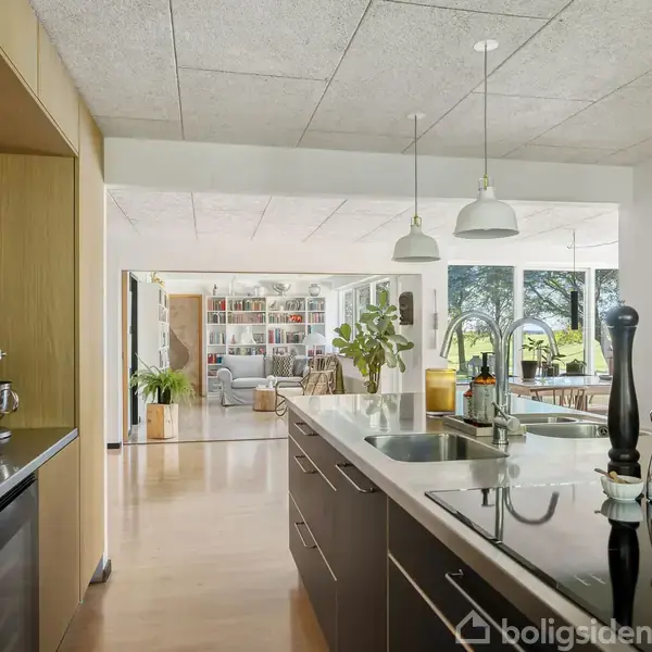 Åbent hus med tilmeldingskrav 2/2 - klik på billede - Velkommen til denne unikke ejendom, som byder på rummelighed og charmerende landlige omgivelser. Boligen er perfekt til den store familie, eller dig der ønsker god plads og mulighed for at holde større sammenkomster. Ejendommen fordeler sig over to plan med i alt fem værelser og fire toiletter – hvoraf tre er badeværelser – hvilket sikrer en optimal indretning til både hverdag og gæster. Husets hjerte og samlingspunkt er det store køkken-alrum, der imponerer med et flot lysindfald fra de mange vinduer. Køkkenet er moderne indrettet med en køkkenø og kvalitetsmaterialer, som gør det til et ideelt sted at samle familien. Fra alrummet er der direkte adgang til den lyse opholdsstue, som har udgang til en altan med udsigt over det smukke marklandskab. Der er også adgang til en rummelig entré med tilhørende gæstetoilet. I forlængelse af alrummet ligger forældresoveværelset med eget walk-in-closet og badeværelse, hvorfra man kan træde ud på en flisebelagt terrasse. Alrummet åbner desuden op til en teenageafdeling, der består af en stue, som kan adskilles med skydedøre, et stort dobbeltværelse med udgang til terrassen, et ekstra værelse samt et badeværelse. Underetagen byder på en stor gildesal, som er perfekt til større arrangementer eller sociale sammenkomster. Derudover rummer underetagen to disponible rum, et badeværelse, et viktualierum med et køkken, et vaskerum samt et værksted med fem kælderrum. Denne etage kan også fungere som e ungdomsafdeling eller eventuelt bruges til liberalt erhverv som fx showroom. Ejendommen har derudover en stor dobbelt garage og ligger i smukke, fredelige omgivelser, hvor den skønne udsigt kan nydes fra både terrassen og altanen ved opholdsstuen. Med den store grund er der desuden rig mulighed for at anlægge en hestefold eller andre fritidsaktiviteter. Denne ejendom er en enestående mulighed for at erhverve sig en rummelig og moderne bolig, hvor der er tænkt på æstetik, samtidig med at de naturskønne omgivelser sikrer et liv i ro og fred.