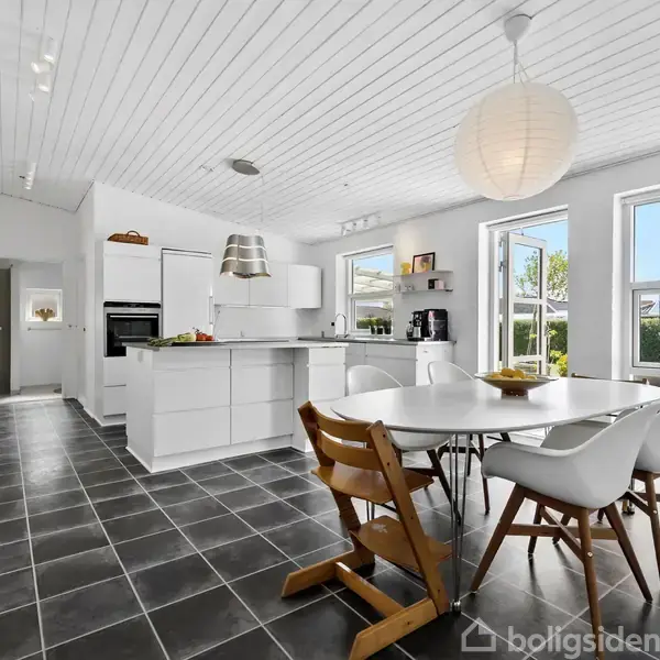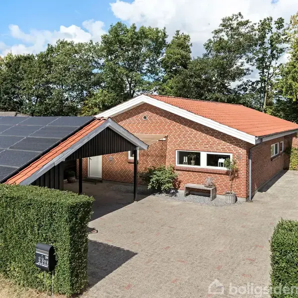 Åbent hus med tilmeldingskrav 3/2 - klik på billede - Velkommen til Esmarcksvej 39 – en charmerende og gennemført moderniseret villa på et trygt, lukket vænge i hjertet af Ryomgård. Her får familien en bolig, der forener komfort, funktionalitet og en hverdag, hvor det hele ligger lige i nærheden. Skole, daginstitutioner, indkøb og offentlig transport er i gåafstand, mens Aarhus og Randers kan nås på blot ca. 35 minutter i bil. Villaen er opført i fuldmuret kvalitet og moderniseret med omtanke. Solceller og pillebrændeovn bidrager til et lavt energiforbrug, så både miljøet og økonomien tilgodeses. Indenfor bydes du velkommen i en praktisk entré/bryggers, som leder videre ind i boligens hjerte – det lyse og indbydende køkken-alrum. Et par trin ned åbner rummet sig mod den store stue med loft til kip, smukt lysindfald og masser af atmosfære. Hertil kommer tre rummelige værelser, to badeværelser og en gennemtænkt planløsning, der passer perfekt til børnefamilien. Udelivet er mindst lige så attraktivt. Den overskuelige have giver plads til både boldspil, leg og afslapning. Terrasserne – både overdækket og åben – indbyder til hyggelige stunder i alle sæsoner. Dertil kommer carport og gode opbevaringsmuligheder i skure. En skøn familiebolig med plads til både hverdagsliv og drømme – midt i et fredeligt område, hvor tryghed og nærhed går hånd i hånd. Kontakt EDC AROS Rønde på tlf.: 86 37 19 44 og bestil en fremvisning allerede i dag. Vi glæder os til at byde jer velkommen!