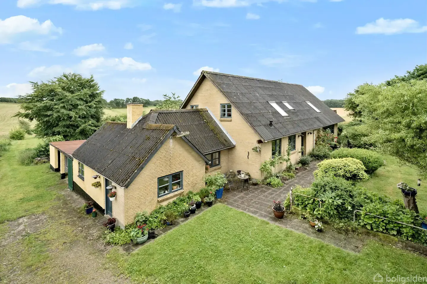 For enden af en privat grusvej, omgivet af fred og ro, finder du denne særlige ejendom, der med sine 16.000 m² giver dig naturen helt tæt på. Grunden har aldrig været behandlet med gift, og ejerne har bevidst ladet naturen blomstre efter princippet “vild med vilje”. Det gør stedet ideelt for dig, der drømmer om bæredygtighed, selvforsyning eller blot ønsker at give plads til naturens eget liv. Ejendommen ligger naturskønt, men samtidig i kort afstand til Horsens, Skanderborg og Hovedgård, hvor du finder skole, daginstitutioner, idrætsfaciliteter og indkøb. Fra ejendommen har du adgang til den omkringliggende natur med bl.a. udsigt til Elbjerg – som nærmest føles som din egen baghave.Grunden byder på mange muligheder: sælger har selv haft heste gående i løsdrift, og de indhegnede arealer giver rig mulighed for fortsat dyrehold – hvad enten det er heste, får, geder, høns eller noget helt femte. Derudover er der anlagt en charmerende æblelund med forskellige sorter, suppleret af bærbuske, som indbyder til selvforsyning i bedste forstand. Huset, der oprindeligt er fra 70’erne, fremstår flot og løbende moderniseret. Med jordvarme som varmekilde har boligen energimærke B. På de 206 m² bolig fordelt på to plan, plus 51 m² høj og tør kælder, får du en fleksibel planløsning. Køkkenet ligger i åben forbindelse med stue og kan nemt udvides til stort køkken-alrum, mens førstesalen byder på hyggelig opholdsstue med synlige spær, trægulve, brændeovn og udgang til en sydvendt terrasse med udsigt over marker og natur. De tre udhuslænger giver rige muligheder – uanset om du har brug for stald, maskinhus, værksted, opbevaring eller plads til hobbyprojekter. Her finder du også det gamle stuehus, som i dag bruges til garage og opbevaring. Alt i alt en ejendom for dig, der ønsker at komme tættere på naturen, leve grønnere, dyrke egne råvarer eller holde dyr – alt sammen i rammer, hvor naturen og biodiversiteten allerede har de bedste vilkår.
