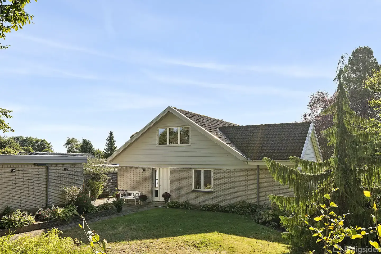 Stor bolig i Dyrup med have og rolig beliggenhed.Denne bolig i hjertet af Dyrup er noget ganske særligt – her får du hele 194 m² fordelt på to plan, en stor grund på 1.143 m² og en beliggenhed, der kombinerer fredelige omgivelser med nem adgang til både by og natur. Huset fremstår med klassiske hvide mursten og ligger midt på grunden, så haven kan nydes både foran og bagved boligen. Når man træder ind, er det første indtryk roen – her er stille og ugeneret, selvom man er tæt på alt det, man har
