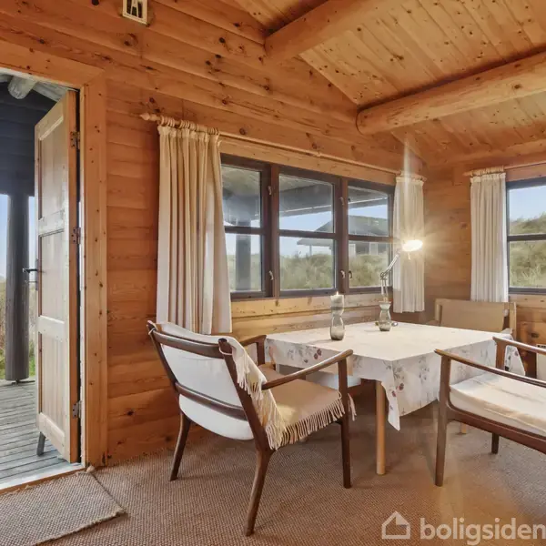 For enden af et fredeligt vænge, hvor naturens egne lyde sætter stemningen, ligger dette sommerhus på en sjældent ugeneret placering blot få hundrede meter fra Vesterhavet. Allerede ved ankomsten møder du den autentiske midt-70’er stil: det gennemførte træudtryk, græstaget og den varme atmosfære, der følger dig både ude og inde. Huset ligger naturligt indlejret i klitterne, og havet er hele tiden nærværende – hvad enten du opholder dig i huset, på terrasserne eller på en af de små klitbakker på