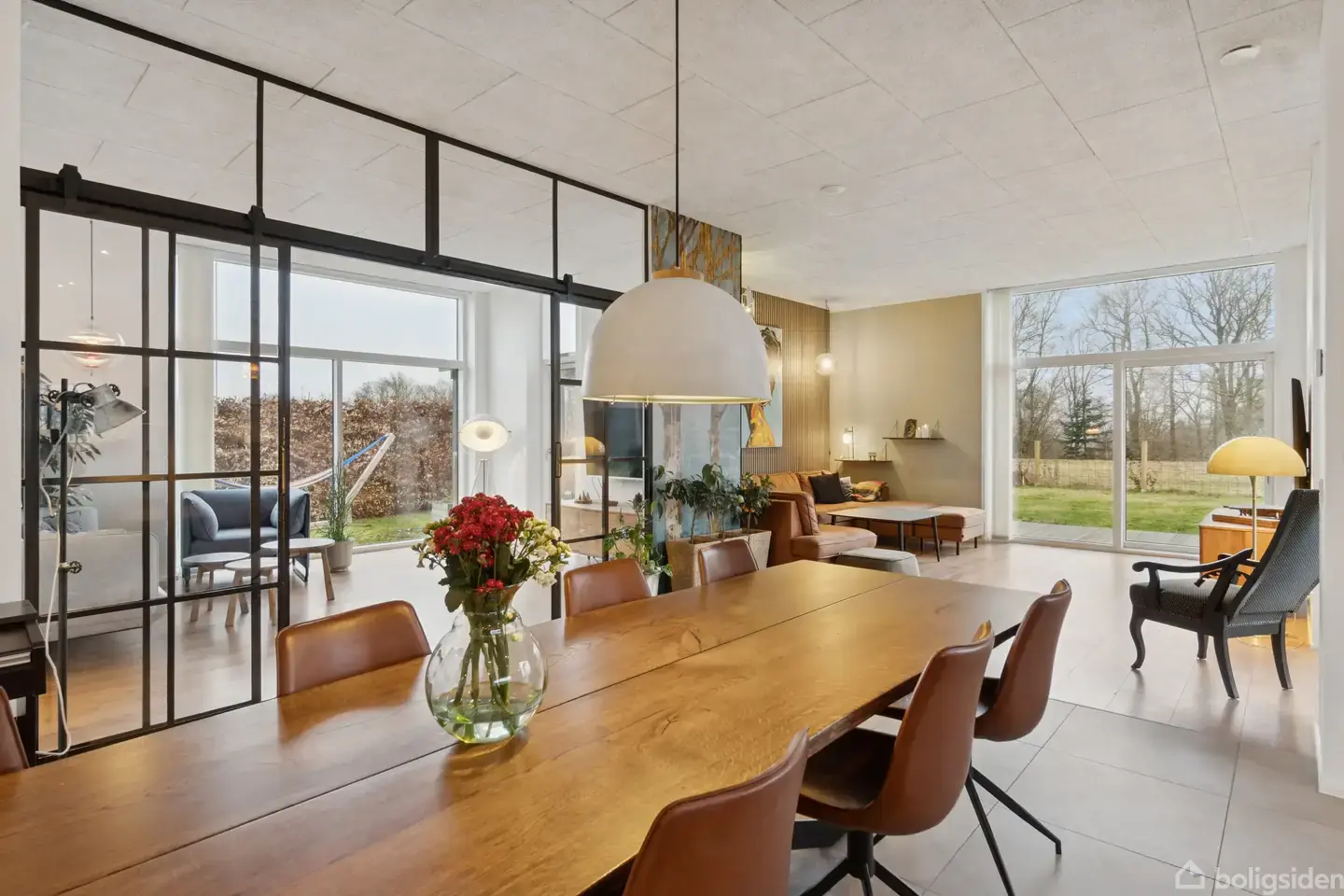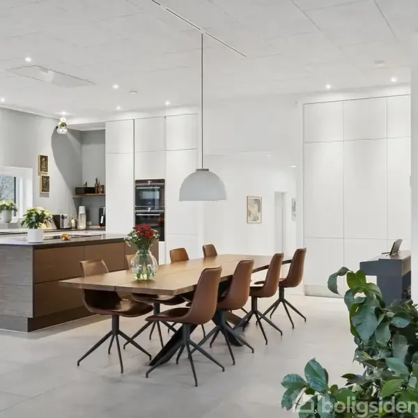 I midten af Funder ved Silkeborg rejser denne moderne villa fra 2019 sig som et arkitektonisk smykke. Facaden er udført i eksklusive, sorte mursten, der fanger solens stråler og skaber et flot spil. Et levende udtryk, som lover kvalitet og detaljerigdom. Her mødes luksus og det omkringliggende landskab i en harmonisk dans, hvor skovens grønne skær strømmer ind gennem de store vinduespartier.Indenfor åbner hjemmet sig med over tre meter til loftet i det store opholdsrum med køkken og stue i foren
