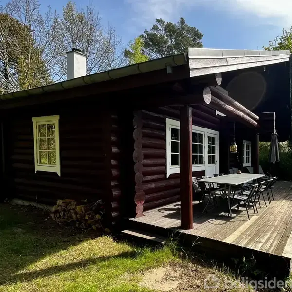 Velkommen til Fåretoften 20 – et imponerende rundtømmerhus fra 2010, hvor komfort og naturskøn idyl smelter sammen i perfekt harmoni. Beliggende på en stor og privat grund på 1.487 m², får du her et sommerhus i særklasse, opført i smukke, massive bjælker, der skaber en helt særlig atmosfære af varme og autenticitet. Indvendigt byder huset på 84 veldisponerede kvadratmeter, hvor de naturlige træmaterialer giver et harmonisk og indbydende udtryk. Et højt til loftet køkken-alrum med pille brændeov
