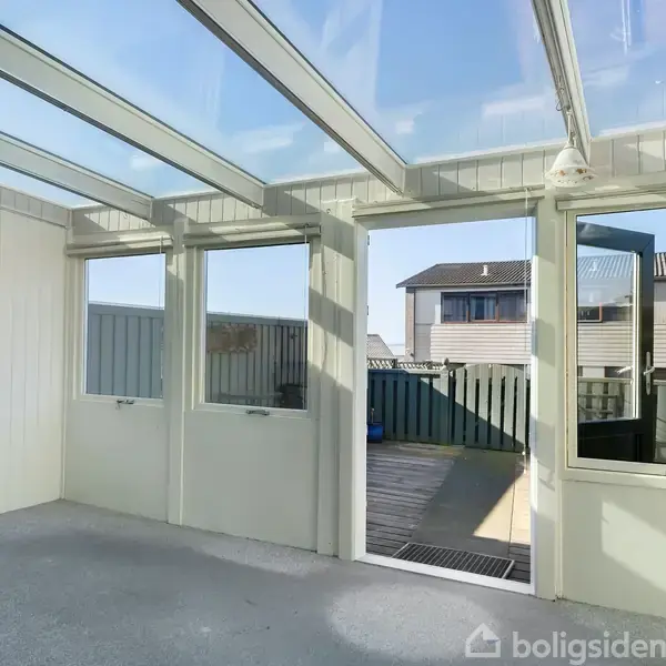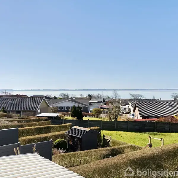 Åbent hus med tilmeldingskrav 2/2 - klik på billede - Flot og velholdt ende-rækkehus på Fårtoftvej nær indkøb, Limfjorden og midtbyen af Thisted Dette rækkehus ligger utrolig godt på en lukket vej i det populære område med rækkehuse på Fårtoftvej. Rækkehuset er bygget i 1962 og er medlem af Ejerlauget Fårtoften, hvor man bl.a. har fælles vaskehus, 1 opbevaringsrum pr. husstand, og dette rækkehus er så privilegeret at have en bred, lukket garage med elhejs tilknyttet. Rækkehuset er på 94 bolig-m2, heraf 47 m2 i stueplan og 47 m2 på 1. sal. Foruden har rækkehuset en sydvendt udestue på 11 m2, der giver masser af lys og holder på varmen. Herfra er der udgang til en 2-delt have mod syd med flisebelægning. Grunden er i alt 111 m2. Selve rækkehuset er indrettet med: Entre med hvide klinker og god skabsplads. Køkken med lyse elementer og plads til mindre spiseplads. Åben forbindelse til stue med trægulv beliggende mod syd samt trappen til 1. salen. Fra stuen er der udgang til udestuen (nyt gulvtæppe i november 2025). Badeværelse med hvide klinker og bruseniche. 1. salen er indrettet med: (trappen kan have en el-stol) 2 værelser med gulvtæppe (værelset ud for trappen har fået nyt gulvtæppe på i november 2025) og fantastisk udsigt mod syd. Mindre opbevaringsrum. Soveværelse med linoleumsgulv og adgang til mindre walk-in-closet. I gangen er der opgang til loftsrum til opbevaring. Man er som ejer medlem af Ejerlauget Fårtoften. Til ejerlauget betales pr. måned 1.900 kr. (heraf udgør 525 kr. a conto varme pr. måned). Fællesudgifterne dækker bl.a. udgifter til vicevært, snerydning, fælles forsikringer, administration, vedligeholdelse af fælles arealer og bygninger, renovation mm. Pr. 1 maj 2025 stiger a conto varme til 575 kr. pr. måned.