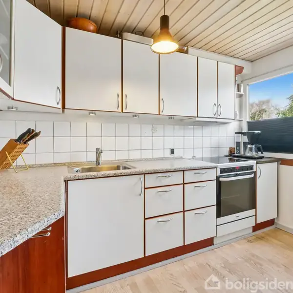 Velindrettet rækkehus med udsigt og central beliggenhed i Thisted ØstbyDette hyggelige og velholdte rækkehus er ideelt beliggende i Thisteds populære Østby, med indkøbsmuligheder lige om hjørnet og kort afstand til både Limfjorden og Rolighedsskolen. Her får du en bolig med en god kombination af bynær beliggenhed og nem adgang til naturskønne omgivelser.Boligen rummer 94 kvm fordelt på to fulde etager, og planløsningen er gennemtænkt og effektivt udnyttet. Rækkehuset ligger godt placeret i bebyg