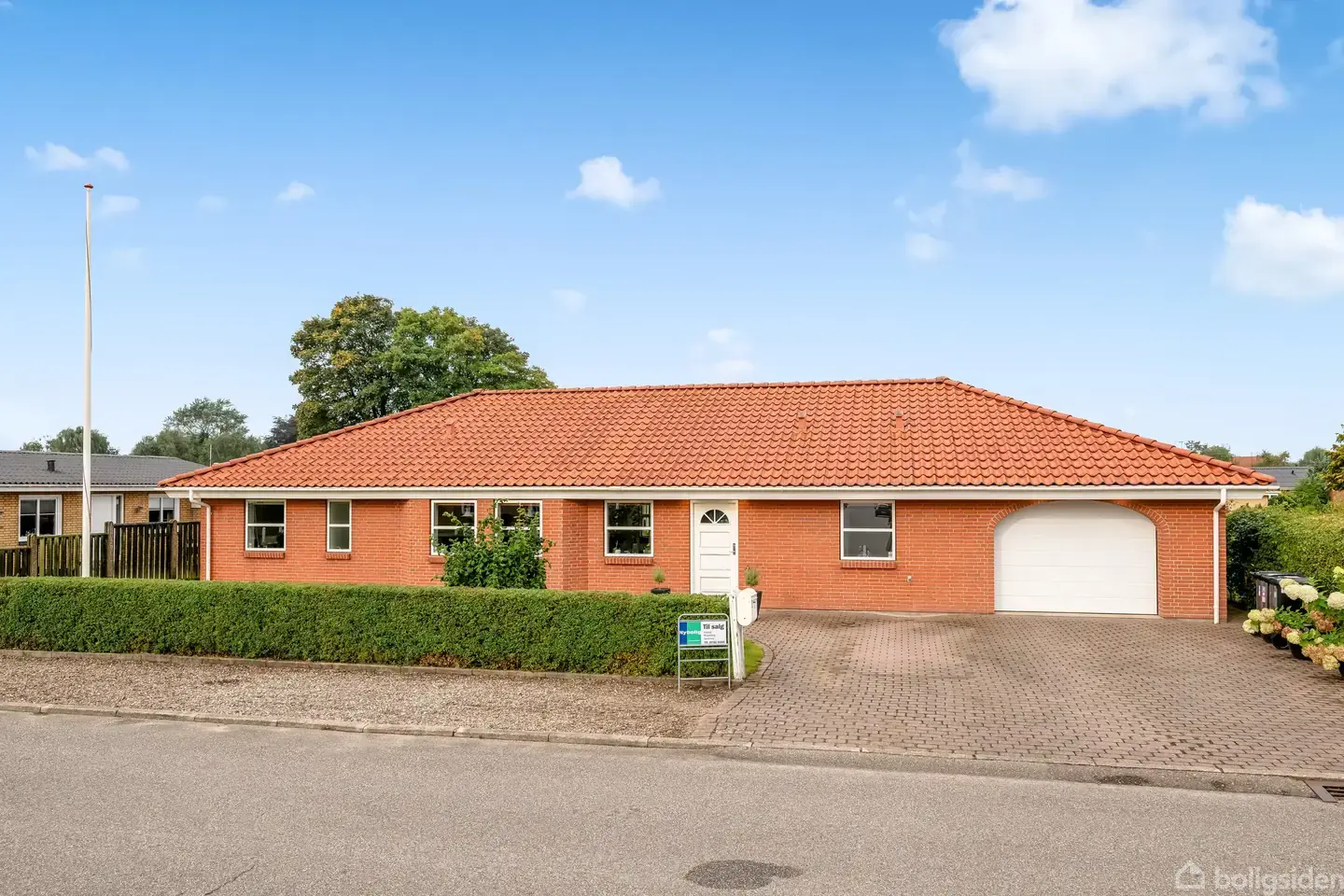 I et roligt og eftertragtet kvarter, tæt på skole, børnehave, indkøb, sportshal og grønne områder, finder du denne velholdte og fuldmurede villa. Her er der tale om en bolig med en særdeles god indretning og en beliggenhed, som gør hverdagen både nem og bekvem.Villaen er omgivet af en stor, solrig have med flere skønne terrasser og gode læforhold, som giver optimale rammer for udeliv og hyggelige stunder med familie og venner. Her er masser af plads til både leg, afslapning og fælles aktiviteter