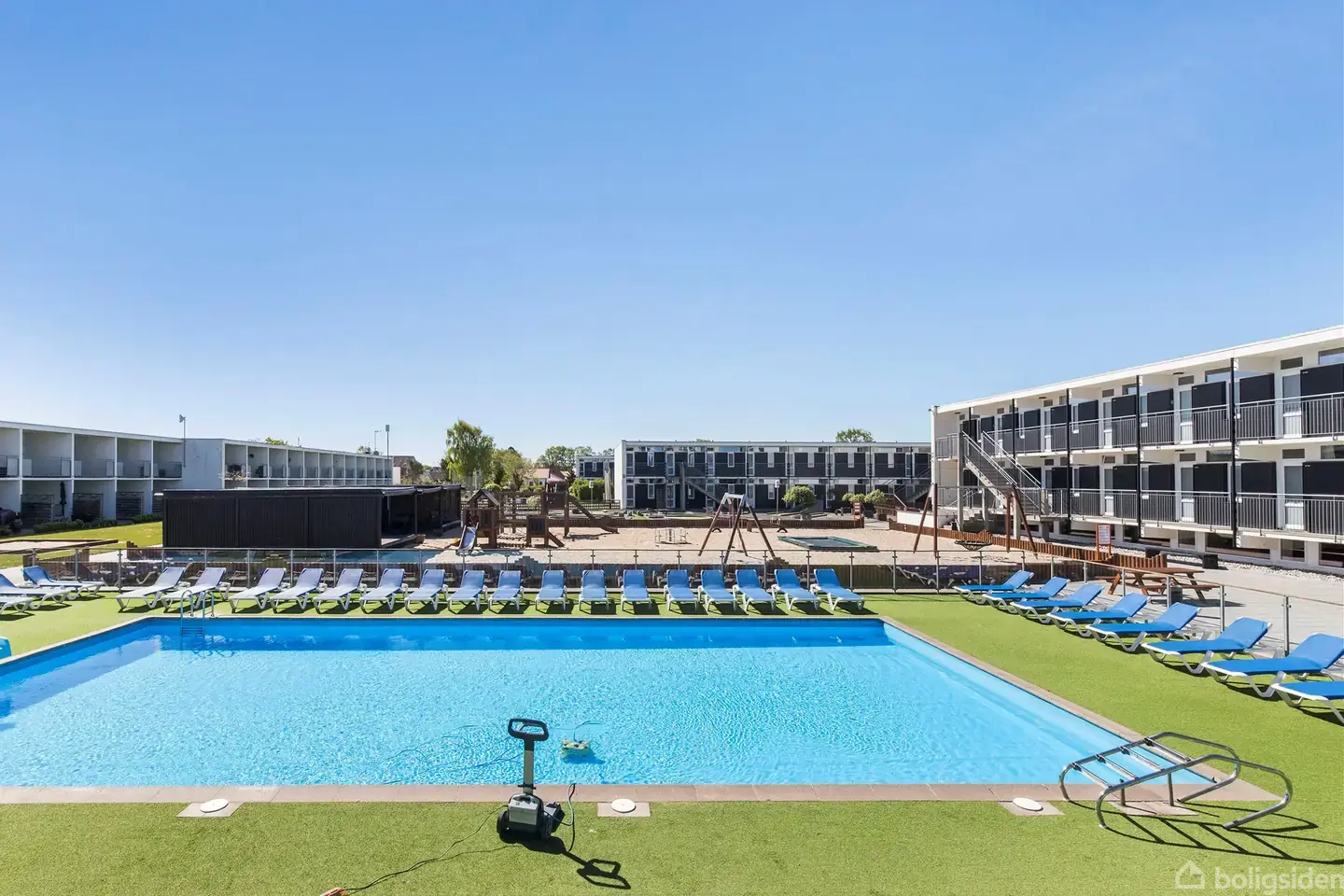 Ferielejligheden er beliggende i B-blokkens stueplan og ligger med en dejlig sydvendt terrasse og med kort afstand til feriecentrets fællesområde. Foruden fællesområdet byder Feriecenteret bl.a. på to swimmingpools, stor legeplads og et aktivitetsrum, hvor mange timer kan bruges for store og små. Ferielejligheden indeholder; entré/fordelingsgang, værelse, badeværelse og køkken i forbindelse med stue. Et rart feriested med mange fællesfaciliteter, aktiviteter og nærheden til havnemiljøet. Bønnerup er især kendt for den dejlige natur, hyggelige fiskerihavn og børnevenlige strand. Skal man på udflugt, er der kort afstand til Djurslands mange attraktioner, som f.eks. Djurs Sommerland, Kattegat Centeret, Skandinavisk Dyrepark, osv.