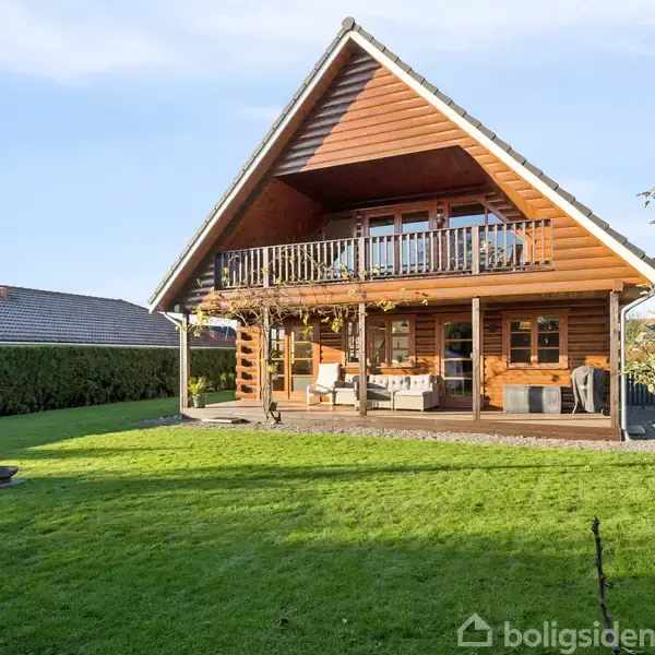 Moderne bjælkehus med udsigt i Skærbæk Få skridt fra skov, strand og bylivet i Skærbæk ligger denne stemningsfulde ejendom. Der er tale om et bjælkehus fra 2000, som er opført af massivt kvalitetstræ og byder på hele 188 velindrettede og istandsatte kvadratmeter fordelt på to etager. Du får en moderne bolig med masser af lys, der samtidig emmer af varme og personlighed. Boligen, som er løbende renoveret og forbedret, rummer blandt andet fire værelser og to badeværelser foruden store opholdsrum.
