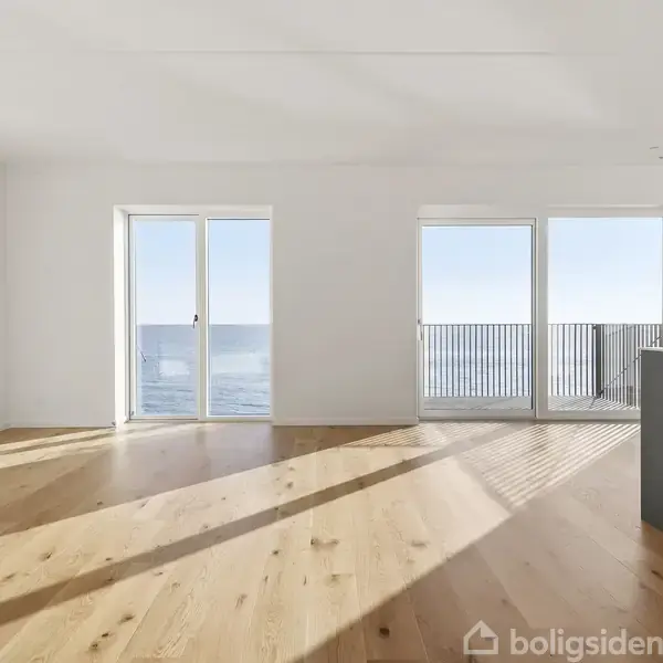 Færgebyen – Lys og indbydende lejlighed på 1. sal med storslået udsigt over vandetPå 1. sal i det eftertragtede Færgebyen finder du denne smukke og velindrettede lejlighed på 120 kvm, hvor udsigten over vandet er en integreret del af boligens udtryk. Her får du et hjem med en helt særlig ro og et fantastisk lysindfald, der strømmer ind gennem de store vinduespartier og giver udsigt fra alle rum.Lejligheden byder velkommen i en rummelig entré med gode opbevaringsmuligheder og vaskefaciliteter. He