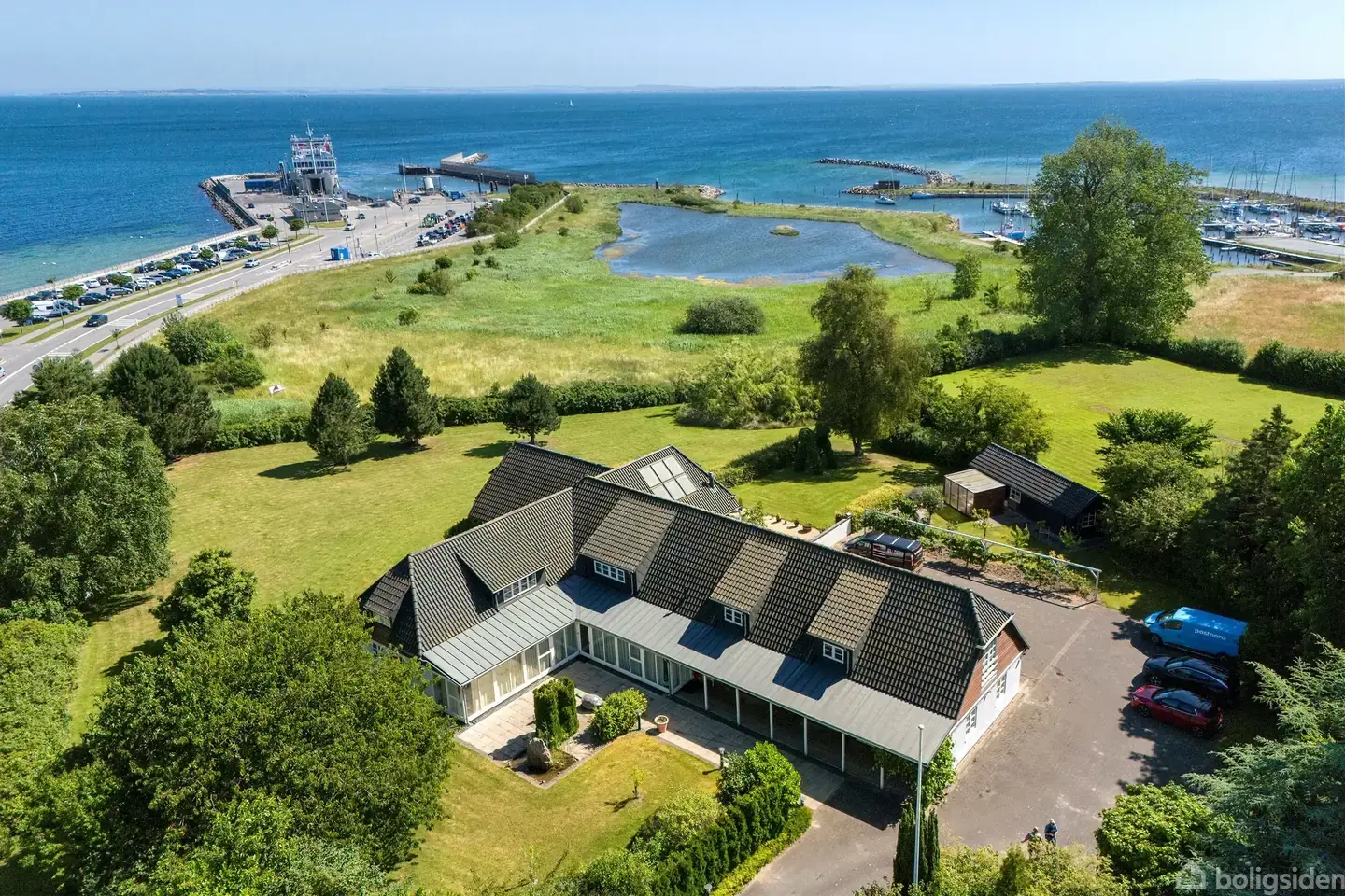 Åbent hus med tilmeldingskrav 1/2 - klik på billede - Færgevej 1 i Fynshav er en ganske enestående villa, der byder på en sjælden kombination af rummelighed, naturskøn beliggenhed og alsidige anvendelsesmuligheder. Med et imponerende boligareal på 500 m² fordelt med mange værelser og gode opholdsrum, er denne ejendom ideel for den store familie, som ”Generationshus”, eller til udlejning via Airbnb eller Bed & Breakfast. Beliggende direkte ned til færgelejet, får du her en udsigtsvilla med en unik placering, der gør det nemt at nyde de maritime omgivelser og den friske havluft. Villaen er placeret på et stort grundstykke består af 4 matrikler med et samlet areal på 6178 m², der anlagt som stor naturgrund, hvor du kan skabe din egen oase af ro og afslapning. Her er der rig mulighed for at indrette en smuk have, opføre yderligere bygninger eller blot nyde den åbne plads og den fantastiske udsigt over det omkringliggende landskab. Den store grund giver også mulighed for at etablere udendørs faciliteter, der kan tiltrække gæster, hvis du ønsker at drive Airbnb, Bed and Breakfast eller lignende. Indvendigt byder villaen på en fleksibel planløsning, der kan tilpasses efter behov. De mange værelser giver mulighed for at indrette separate gæsteværelser, kontorer eller hobbyrum, alt efter hvad der passer bedst til nye ejers ønsker og livsstil. De store opholdsrum er perfekte til sociale sammenkomster, og den åbne forbindelse mellem køkken og stue skaber et naturligt samlingspunkt i hjemmet. Fynshav er kendt for sin naturskønne beliggenhed og gode infrastruktur. Med kort afstand til både Sønderborg og Augustenborg, har du her en ideel base for både hverdag og fritid.