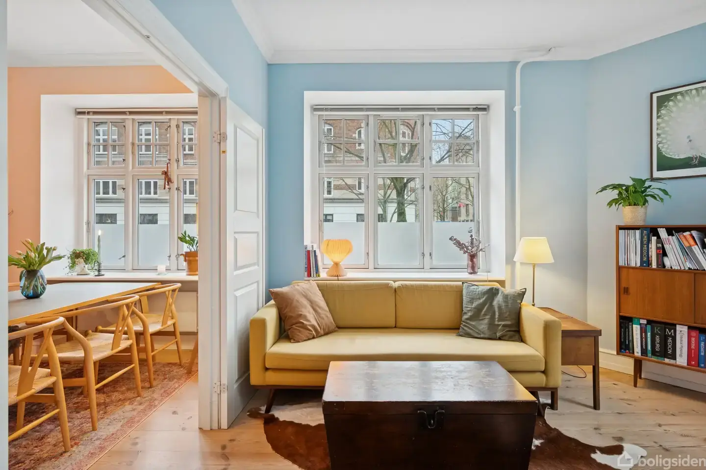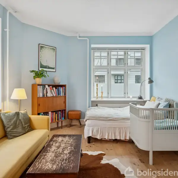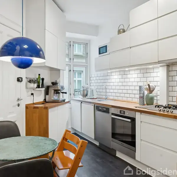 Hyggelig treværelses i Svømmehalskvarteret Den hyggelige atmosfære er mærkbar overalt i denne treværelses i Svømmehalskvarteret. Her er tale om en høj stuelejlighed, der er lys og ugeneret, og som fremtræder i rigtig pæn stand. Endnu et plus er den fleksible planløsning, der eksempelvis giver fine rammer for at benytte boligen som delelejlighed. Klassiske plankegulve pryder det charmerende hjem, som blandt andet byder på to højloftede stuer og et soveværelse. En elegant fløjdør forener stuerne