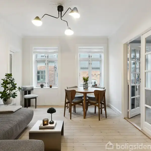 Denne smukt istandsatte lejlighed ligger tilbagetrukket og roligt, men med en af Nørrebros mest levende bydele lige om hjørnet. Tæt på Stefansgade og Den Røde Plads forenes urban puls med privat ro i en bolig, hvor både planløsning og atmosfære er gennemtænkt. Lejligheden byder på en god rumfordeling med naturlige overgange mellem rummene, og de høje lofter tilfører boligen en sjælden lethed og rummelighed. Det fine lysindfald understreger fornemmelsen af luft og giver hjemmet en behagelig og in