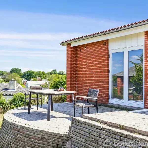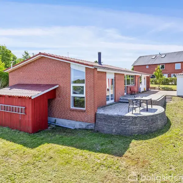 Du sidder med en kop kaffe på terrassen på Fasanvej 11 i Nordborg. Du nyder udsigten over de grønne marker og Nordborg sø. Her er et hjem med sjæl, bevarede originale detaljer og funktionelle løsninger. Det ligger i et stille og roligt villakvarter. Herfra er der kun få kilometer til Nordborg centrum med skoler, indkøb mm. Fra terrassen går du ind i stuen. Den er stor og med masser af lys fra de store vinduer. Det ludbehandlede rustikloft går op i kip og giver en god fornemmelse for rummet. Rummet er aflangt, men en par trappetrin og en lav mur med brændeovn på den ene side fungerer som afskærmning mellem spisestuen og opholdsstuen. Det skaber et rum, hvor du kan trække dig tilbage og som indbyder til hyggelige timer. Gulvet i opholdsstuen består af et smukt afslebet og nylakeret parketgulv mens gulvet i spisestuen er et slidstærkt laminatgulv, der komplimenterer gulvet i opholdsstuen. Hele husets lofter går op i kip og er enten ludbehandlede eller hvidmalede rustiklofter. Det er med til at alle rummene virker store, luftige og moderne. Husets store soveværelse med god skabsplads støder op til opholdsstuen og fra spisestuen er der adgang til endnu et værelse. Gulvene i spisestuen og værelset er belagt med et praktisk laminatgulv, der smukt komplimenterer parketgulvet i opholdsstuen. Også husets 3. værelse, entré, fordelingsgang og køkken er belagt med laminatgulv. Fra stuen går du videre til en fordelingsgang med gode muligheder for garderobe eller skabsplads. Herfra er der adgang til det 3. værelse, badeværelset og køkkenet. I badeværelset er der brusekabine og gulvvarme. Husets køkken er velholdt og funktionelt. Herfra går du ud i husets nyrenoverede bryggers, det er et stort rum med nye fliser på gulvet, plads til hårde hvidevarer og hele familiens sko og jakker. I bryggerset gemmer der sig en bonus: et skab, fra gulv til loft, der er indrettet som et lille viktualierum, praktisk beliggende lige ved siden af køkkenet. Husets grund er niveaudelt. Den store og smukke terrasse, der er bygget op i niveau med huset byder på en fantastisk udsigt ud over de grønne marker. Pladsen mellem huset og den rødmalede garagen/værksted giver mulighed for at skabe et hyggeligt uderum. I forlængelsen af garage ligger et åbent, overdækket redskabsskur, som nemt kan indrettes til et loungeområde eller endnu et uderum. Alt i alt et hjem med masser af charme, funktionalitet og potentiale. Og en beliggenhed, der skaber ro i sjælen.