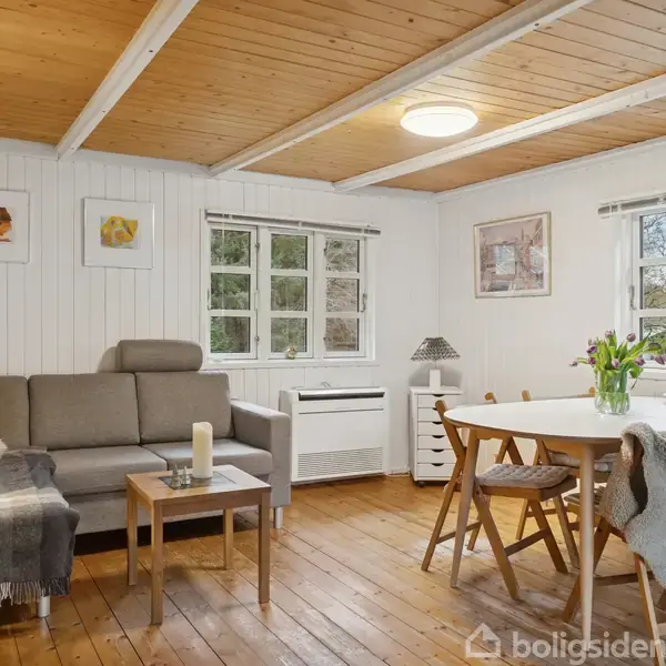 Velholdt og charmerende fritidshus med udsigt til skovarealPå en lille, privat fællesvej i det skovklædte sommerhusområde i Fuglslev, ligger dette fine fritidshus fra 1970. Her får I et klassisk sommerhus med hvide detaljer, hvor hyggen og privatlivet er i højsædet. Det charmerende træhus er smukt placeret på en stor, dejlig grund, som grænser op til ubebyggede skovarealer, og i nærheden finder man et uspoleret naturområde ned mod Fuglslevs lille sø. Her skaber træer og buske et rigt insekt- og