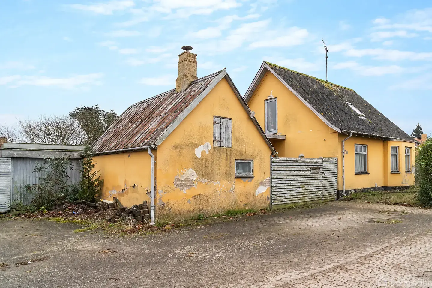 Rummelig murstensejendom med markudsigt og moderniseringspotentiale Villa i 2 etager, 4 værelser, 1 badeværelse, stor garage.Boligen rummer entré med adgang til badeværelse og videre ind til køkken. Køkkenet er funktionelt indrettet med gode skabe og plads til hverdagens aktiviteter. I stueplan ligger desuden et værelse, der kan fungere som soveværelse, ekstra opholdsrum eller kontor. Stuen vender mod haven og har udgang til en nordøstvendt terrasse, hvor morgensolen og udsigten til marken mod