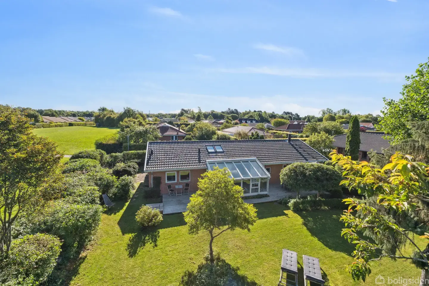 Det er kombinationen af en fredelig beliggenhed i Allerød, en optimal planløsning uden spildplads på tværs af 152 kvadratmeter inklusive integreret udestue og en dejlig, velanlagt have, der kendetegner denne fortræffelige ejendom. I kan se frem til behagelige rammer om en nem hverdag. Huset ligger som det sidste på en blind vej, og herfra er der hverken langt til skole, pasningstilbud eller indkøb. Det hele nås inden for en radius af bare halvanden kilometer, og på samme tid er I placeret tæt på