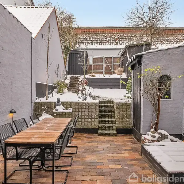 Her udbydes et helt særligt og gennemført byhus, kun 100 meter fra åen midt i Aarhus C, hvor byliv, stemning og ro går op i en sjældent set helhed. Huset blev købt i 2024 og er siden blevet gennemgribende istandsat fra ende til anden med stor respekt for husets sjæl, og med særligt fokus på funktionalitet og æstetik. Udvendigt fremstår huset i dag med nypudset facade i en elegant og moderne farve, der spiller perfekt sammen med de nye sorte trelags lavenergivinduer. Overalt omkring huset er vin