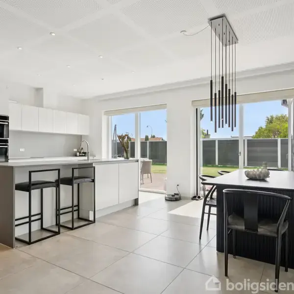 Velkommen til denne nyere opførte villa fra 2019, som byder på 181 kvm moderne boligkomfort i rolige omgivelser. Ejendommen præsenterer en perfekt planløsning, der gør den ideel for børnefamilien, der blandt andet får store, lyse opholdsrum, fire værelser og to badeværelser foruden en dejlig have at boltre sig på. Husets hjerte er det rummelige køkken-alrum, hvor materialevalg og design er i højsædet. HTH-køkkenet med bordplader ført til gavl er udstyret med en indbygget kaffemaskine, integrere