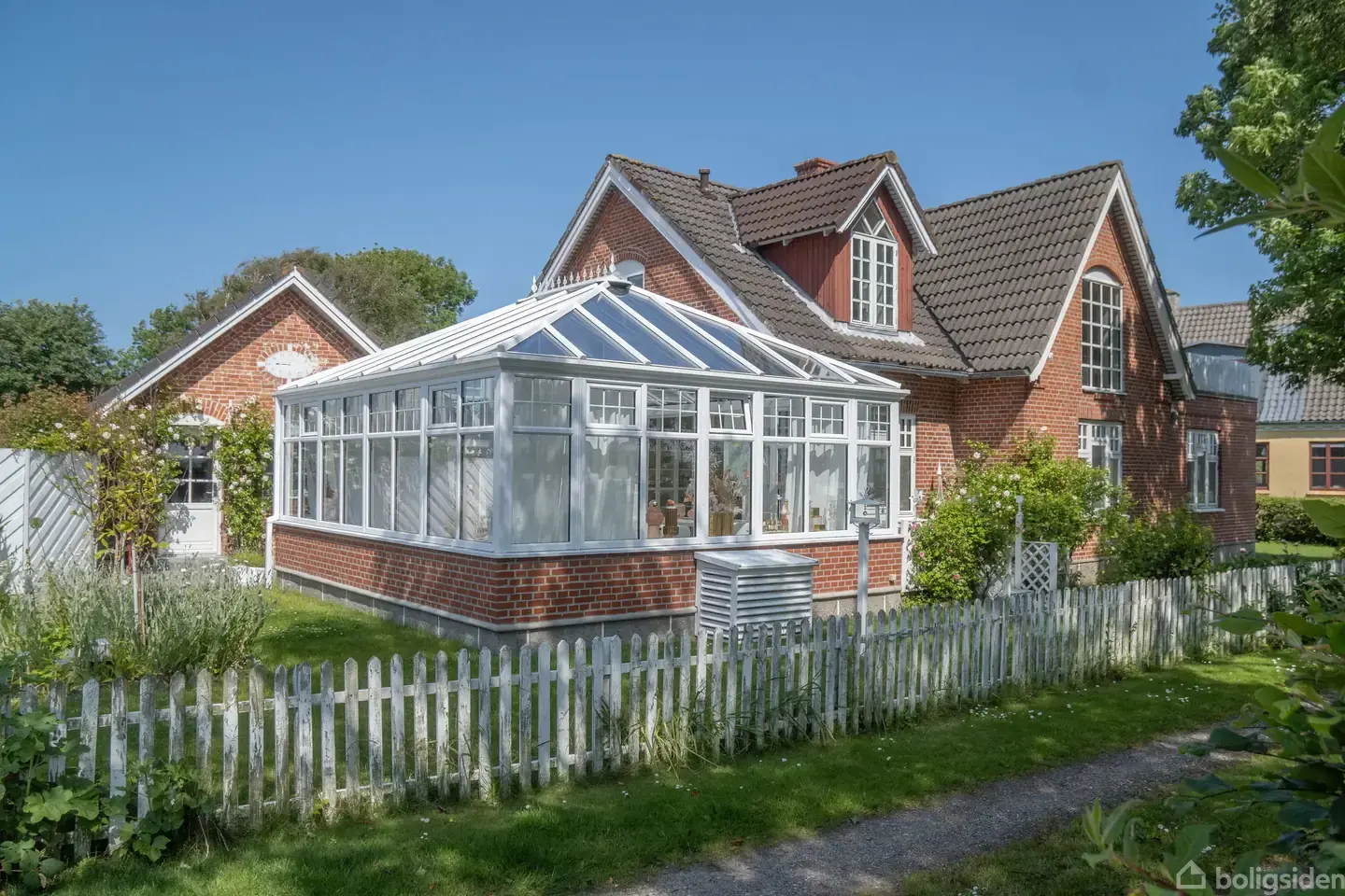 Charmerende villa fra 1916 med orangeri, pergola og frodig haveidyl lige ved Gjøl havn
