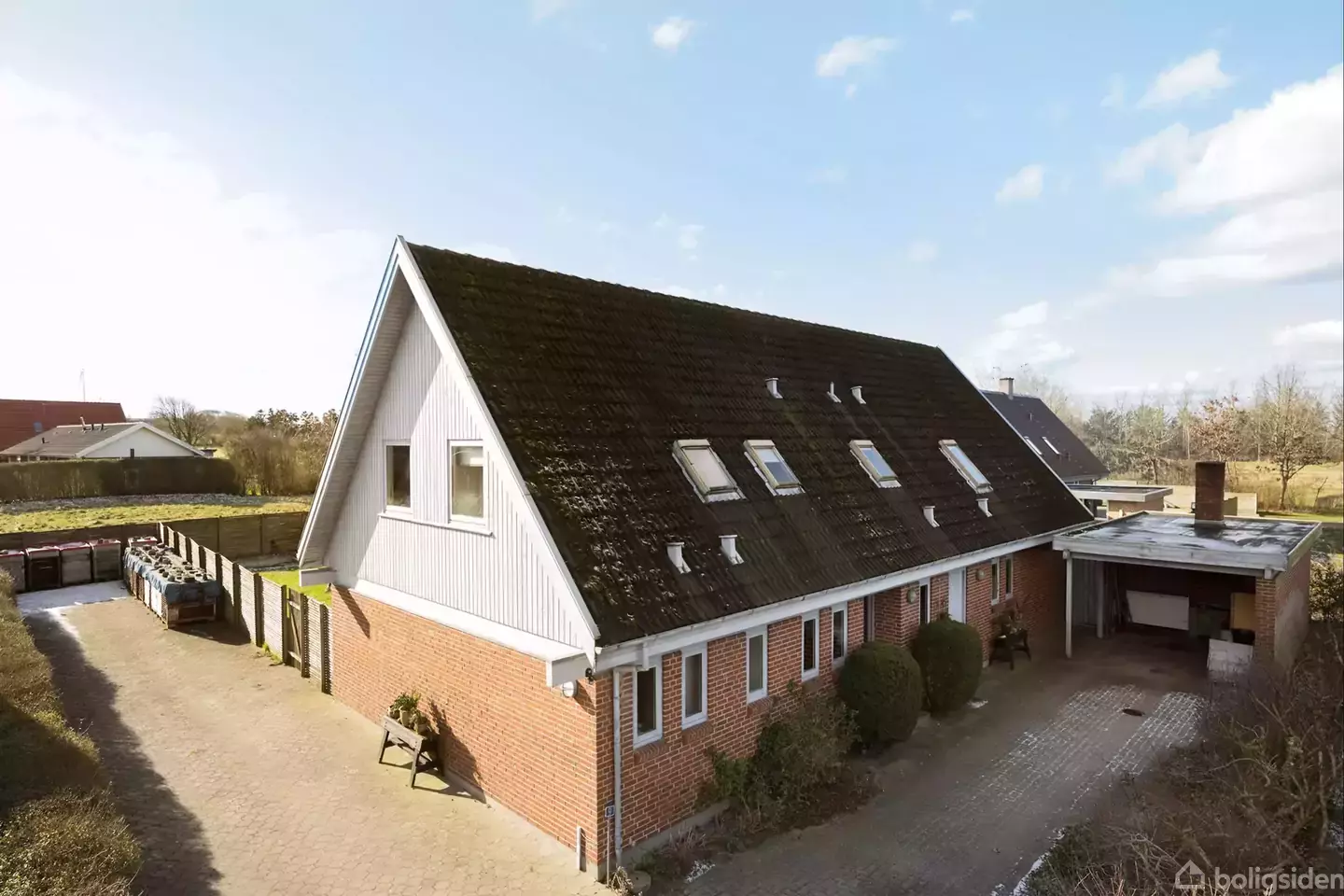 Her er tale om en meget rummelig bolig med et samlet boligareal på hele 264 m2. Desuden ligger boligen i rolige og ugenerte omgivelser i et lille landsbysamfund og med kort afstand til Handbjerg Strand og Marina. Holstebro by og motorvejsnettet ligger ca. 10-15 minutters bilkørsel fra boligen. Boligen er opført i 1977 i en pæn og tidløs, rødbrun teglsten og taget er beklædt med betontagsten. Der er tale om et solidt byggeri og boligen fremstår mere eller mindre i oprindelig stand. En ny ejer har således rige muligheder for selv at sætte sit præg på boligen. Indretningen er med en præsentabel Entre, hvor der også er trappe til 1. sal og en fordelingsgang - Bryggers med bord med vask og plads til vaskemaskine og tørretumbler - et hyggeligt spisekøkken med udgang til en vestvendt terrasse - en stor og rummelig Stue med en hyggelig pejs. Her er også et godt lysindfald fra store vinduespartier, Desuden er der udgang til terrassen/haven - et Kontor - et Soveværelse - et Badeværelse med både kar og bruseniche - et Gæstetoilet. På 1. sal er der Repos - 3 Værelser - et lille Depotrum - et Badeværelse og et meget stort Aktivitetsrum eller Stue med udgang til en svalegang. Der er særdeles gode parkeringsforhold på grunden, idet der er store flisebelagte arealer. Bag huset er der er en skøn og ugenert have. Her kan man virkelig få meget hus for pengene.