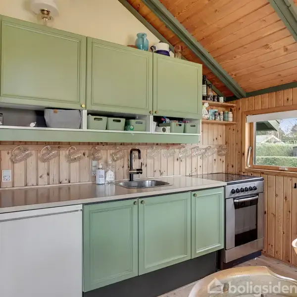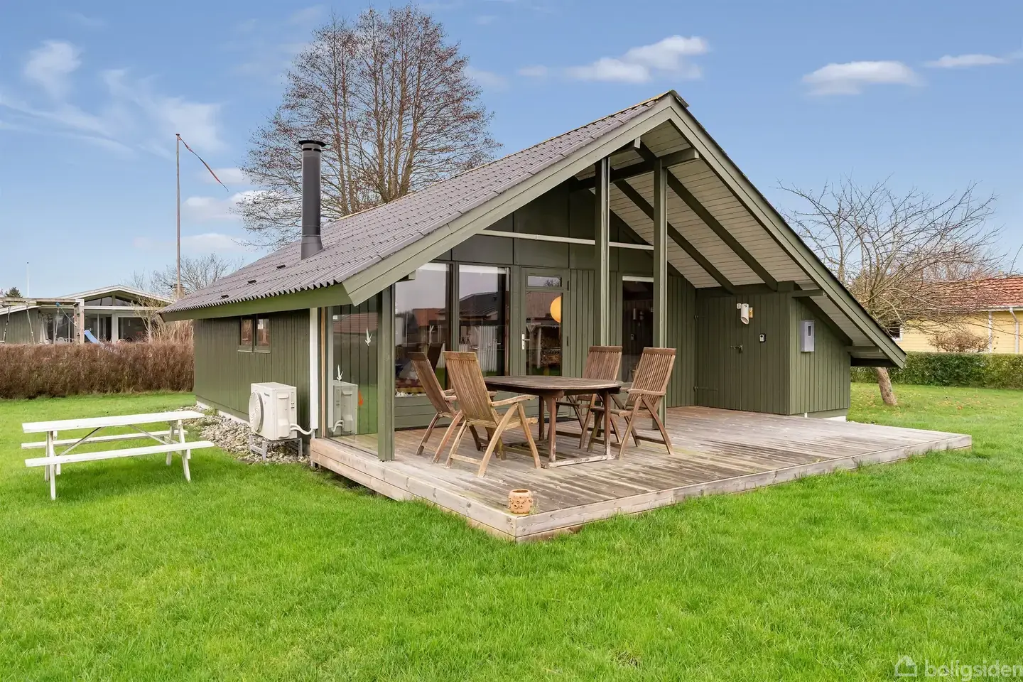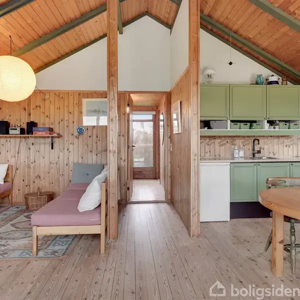 Velkommen til Fjordparken 28 i skønne Høll. Sommerhuset på Fjordparken 28 ligger i et roligt og eftertragtet område i Høll med gåafstand til den populære Fladstrand. Her får man et moderne og indbydende fritidshus på en stor grund med god plads til leg, ophold og udeliv.Indenfor træder man ind i en lys stue i åben forbindelse med køkkenet. Rummet er moderniseret med et tidsløst udtryk og fungerer som husets centrale opholdszone. Alkoven bidrager med en hyggelig og multifunktionel sove- eller hvi