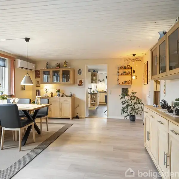Velholdt etplansvilla med skønne udendørsarealer i HandbjergDrømmer du om en pæn og velholdt villa med gode udearealer, hyggelig have og praktiske udhuse? Så er denne villa i Handbjerg det perfekte valg! Her får du rolig beliggenhed i villakvarter med stisystemer til legeplads og kort afstand til Limfjorden. Her kan der året rundt tilbringes gode stunder, om det er som vinterbader i nærliggende klub eller med gåture ved vandet. Marinaen har bådpladser, spisested, iskiosk og badestrand. Indgang