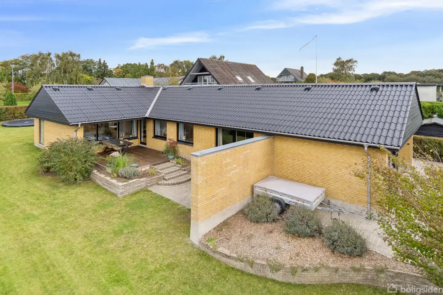 Stor, lys villa i dejligt Skalskvarter På en attraktiv og meget fredelig beliggenhed i Skals finder I denne nydelige og særdeles velholdte villa. Planløsningen med tre værelser og indbydende, lyse opholdsrum er fremragende, og den velanlagte have er der heller ikke en finger at sætte på. Velkommen til. Den gule murstensfacade får selskab af et flot tag fra 2025, og som I træder inden døre, vil I bemærke, at der er nye gulve fra 2024. Gulvene, lysindfaldet og den rigelige plads skaber en fantast
