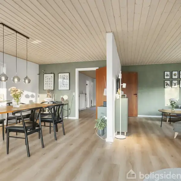 På Floravej 3 i Østervrå møder man en solid rødstensvilla fra 1962, der gennem årene er moderniseret og i dag fremstår lys, indbydende og velfungerende. Her er tale om et hjem, hvor materialevalg og indretning spiller smukt sammen og skaber en rolig og venlig atmosfære, som mærkes allerede ved ankomsten.Boligen byder velkommen via en lille, praktisk entré, der leder videre ind i husets fordelingsgang. Herfra er der adgang til alle rum, hvilket giver en overskuelig og sammenhængende planløsning.