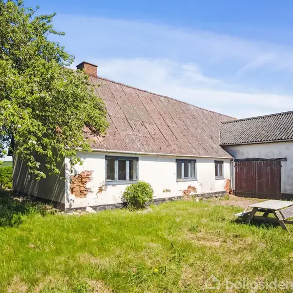 Idyllisk beliggende ejendom til totalrenovering/nedrivning Søger du en ejendom der er beliggende meget idyllisk og ugenert så har du fundet den rette. På en lille grusvej i udkanten af Flovt ligger denne lille perle af et håndværkertilbud. Ejendommen trænger til en fuldstændig renovering eller eventuel nedrivning hvor man bevarer udhuset. Der er et stuehus med et bebygget areal på 101 m2 og 75 m2 bolig, herudover er der en ladebygning/ udhus på 130 m2, som kan bevares og anvendes til værkested,