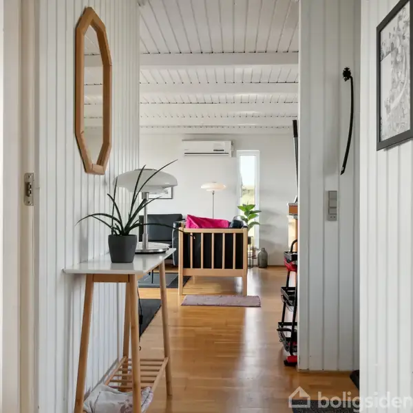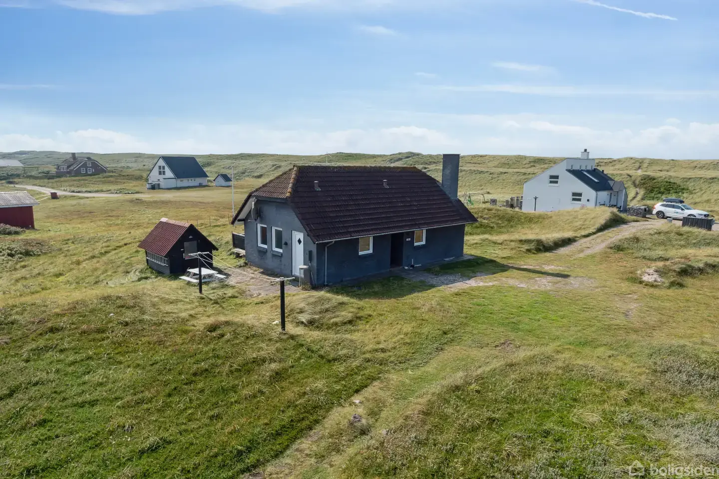 Med en sjældent god beliggenhed i anden række til Vesterhavet og kun 1-2 minutters gang til stranden via klitsti, finder du dette velholdte og funktionelle sommerhus på Flyvholmvej 27B i Vrist. Her får du en fredelig placering midt i naturen – og en grund, der har indhegning, så både børn og hunde trygt kan opholde sig udendørs. Det er med andre ord en sommerhus adresse, der kombinerer nærhed til havet, praktisk anvendelighed og god komfort.Huset er opført i klassisk sommerhusstil med mørk facad