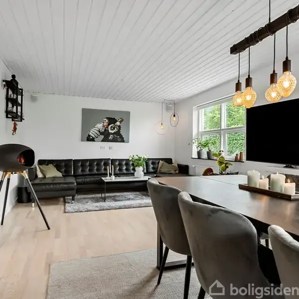 Åbent hus med tilmeldingskrav 2/2 - klik på billede - I hjertet af Forlev – en fredelig landsby omgivet af natur og kun en kort køretur fra Skanderborg finder I denne indbydende villa, som kombinerer moderne komfort, funktionalitet og masser af charme. Her er der plads til hele familien, både inde og ude. Boligen byder velkommen med et stort og praktisk bryggers med indbyggede skabe og vaskesøjle, diskret placeret væk fra den daglige færdsel. Det stilrene badeværelse er indrettet med mørke elementer, bruseniche, gulvvarme og et moderne spejl med integreret lys. Køkkenet er lyst, rummeligt og funktionelt med hvide elementer, sorte greb og god bordplads. Her er både plads til daglig madlavning og samvær, og køkkenet ligger i åben forbindelse med den store stue, som er ideel til både spisebord og sofagruppe. Herfra er der desuden adgang til et ekstra værelse – perfekt som børneværelse, gæsteværelse eller hjemmekontor. På førstesalen mødes I af en lys fordelingsrepos og tre gode værelser. To af værelserne har indbyggede hemse – et stort hit blandt børn og teenagere, som får deres egen lille hule. Det tredje værelse byder på en charmerende kvist, som skaber en skøn atmosfære og ekstra lysindfald. Udenfor finder I en stor, velplejet have med græsplæne, der indbyder til leg og boldspil. Den overdækkede terrasse er perfekt til sommerens grillmiddage, og det hyggelige bålsted fungerer som naturligt samlingspunkt for hele familien. Tilhørende huset finder I en garage og et stort redskabsskur. Kom og oplev en naturskøn villa i Forlev - ring til EDC på 86 52 35 00 for en fremvisning! Tjek Boliglån https://www.raadtilpenge.dk/Gode-raad/boliglaan/landingsside