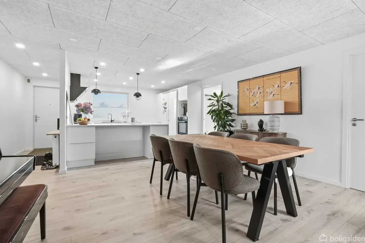 FORTUNA ALLÉ 17 – TOTALRENOVERET OG INDFLYTNINGSKLAR BOLIG I ET ROLIGT OMRÅDE TÆT PÅ CENTRUMPå Fortuna Allé 17 finder du en gennemført og moderne bolig, som siden 2022 har gennemgået en omfattende renovering. Her får du et indflytningsklart hjem i et roligt og hyggeligt område, samtidig med at du har kort afstand til centrum, skole, indkøb og alle hverdagens nødvendigheder.Når du træder indenfor, bliver du mødt af et lyst og rummeligt køkken-alrum, hvor det flotte HTH-køkken fra 2023 danner ramm