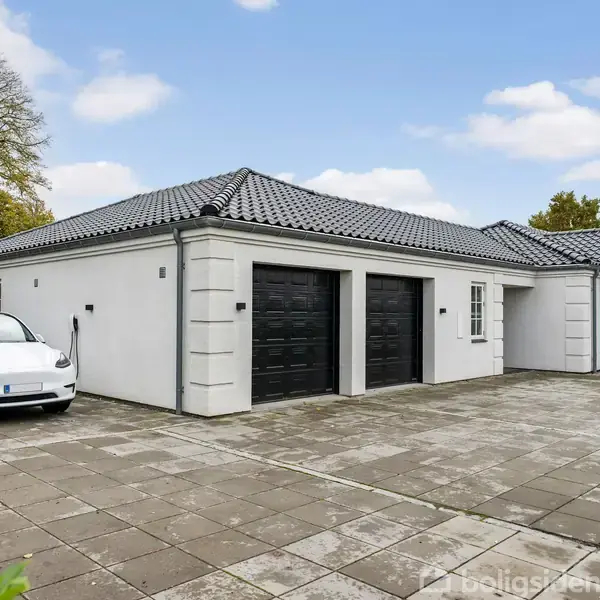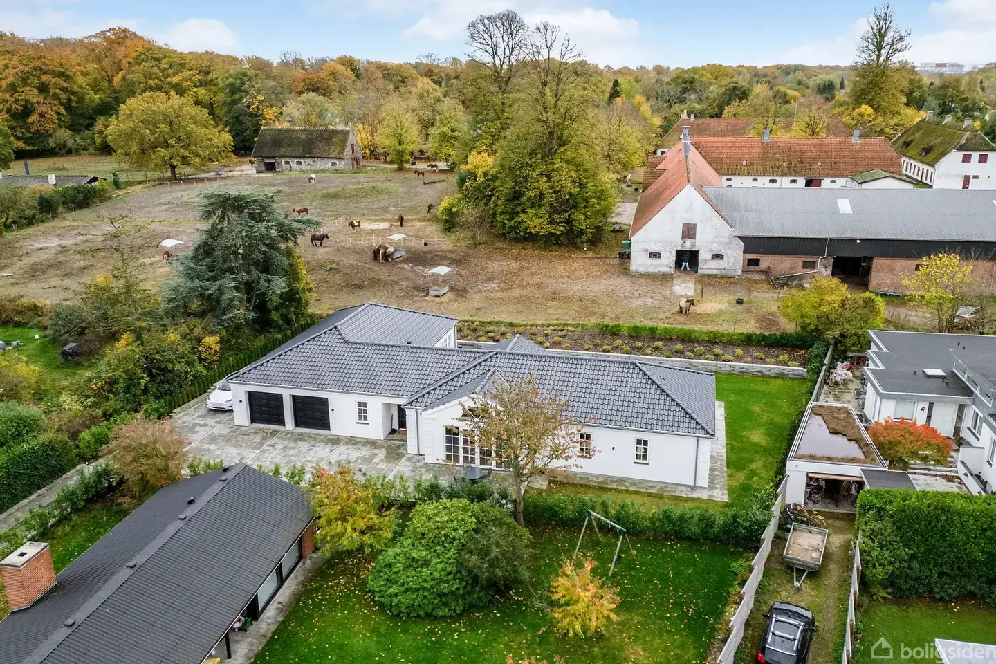 Velkommen til denne smukke og gennemførte villa, opført af Lind & Risør i 2023, hvor hver eneste detalje er nøje udvalgt for at skabe et hjem i absolut særklasse. Ejendommen fremstår moderne og elegant med eksklusive materialer, engelske armaturer og gulvvarme overalt - selv i den 46 m² store, integrerede garage til to biler, som du kan gå tørskoet til direkte fra boligen. Indgangen byder på en rummelig entré med indbygget bænk og elegant garderobeskab, der sætter tonen for husets høje kvalitet og gennemtænkte planløsning. Herfra er der adgang til gæstetoilet og videre ind i det store køkken-alrum med loft til kip og ekstra vinduer i gavlene, som giver et fantastisk lysindfald. Køkkenet er et sandt samlingspunkt i boligen - udført i klassisk stil med mørke, eksklusive fronter, stor køkkenø og rigelig skabsplads. Bag en skjult låge finder du et praktisk viktualierum. Fra køkken-alrummet er der direkte udgang til terrassen og udsigt til hestene på Dyrehavegaard - en idyllisk kulisse til hverdagen. Opholdsstuen ligger en suite til køkken-alrummet og har ligeledes udgang til terrassen, hvorfra du kan nyde den solrige og ugenerede grund. Forældreafdelingen byder på et roligt soveværelse med walk-in closet og eksklusivt badeværelse med dobbelt håndvask og rummelig bruseniche. , Der er loftrum til opbevaring over forældreafdelingen og stuen. Børneafdelingen er perfekt indrettet med to store værelser - begge med walk-in closet, direkte udgang til terrassen og adgang til et stort badeværelse med to brus og dobbelt håndvaske - ideelt som teenageafdeling. Huset er opført med smukke sildebensparketgulve, store vinduespartier og et naturligt lysindfald, der binder det hele sammen i en eksklusiv og indbydende helhed. Beliggenheden er noget helt særligt - nabo til Dyrehaven og omgivet af fred, ro og natur, samtidig med at du kun er få minutters kørsel fra både Lyngby og Charlottenlund. Her får du et hjem i absolut topklasse, hvor funktionalitet, æstetik og kvalitet går hånd i hånd.