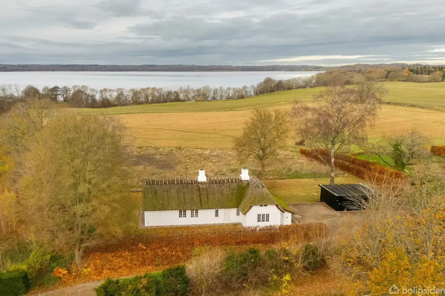 Højt beliggende i den Nordsjællandske natur og med en fænomenal udsigt over Esrum Sø er denne perle af en stråtækt landvilla beliggende. Ydermere privat og ugenert beliggende og med en drøm af en grund på 4.530 m2 der går i ét med det omkringliggende landskab. Herfra kan roen, naturen og ikke mindst de meste vidunderlige solnedgange nydes. Staks man kører op ad indkørslen, glædes man over beplantningen og på gårdspladsen begejstres man over udsigten. Det er dog først og fremmest ejendommen der, med sine hvidpudsede facader, yndige vinduer og charmerende stråtag, får det hele til at gå op i en højere enhed. Ejendommen byder, blandet andet, i dag på en hyggelig stue med fritlagte bjælker og pejseindsats og husets naturlige samlingspunkt, det atmosfærefyldte køkken. Første sal er i dag indrettet med to værelser og et opholdsrum. Derudover et værelse i stueplan samt entré og ikke mindst badeværelset med terrassedør ud til den storslået natur, der kan nydes fra brusebadet. Hele ejendommen fremstår ude som inde i flot stand og er ydermere energioptimeret med jordvarme. Kan dateres tilbage til år 1765 og væsentlig om - og tilbygget i 1977 og er igennem de senere år nænsomt renoveret og moderniseret. I alt 157 boligkvadratmeter og derudover udhus/garage fra 1995.