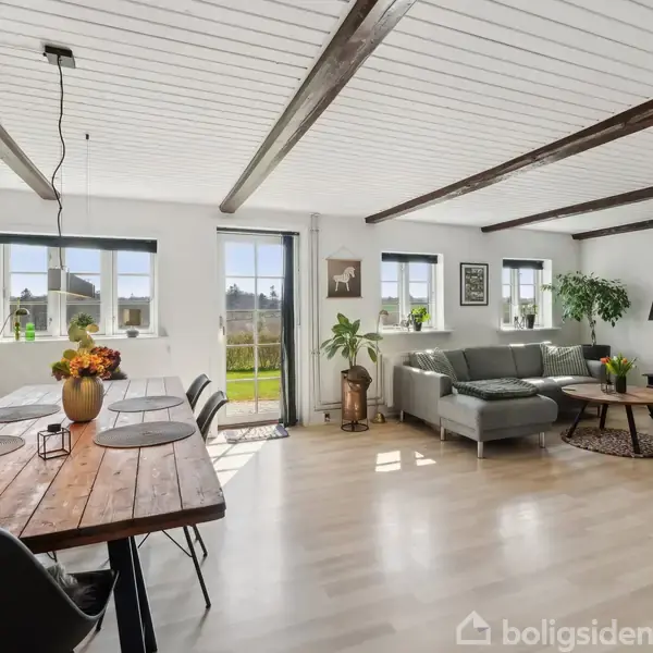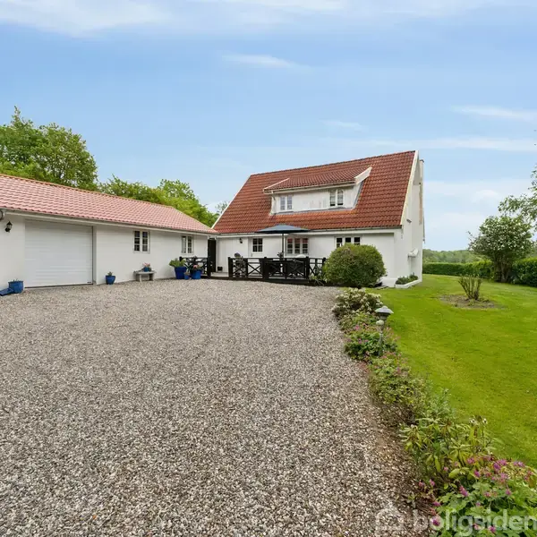 Indfytningsklar villa i fred og ro med udsigt over markerne!En absolut charmerende og indflytningsklar villa med stor garage beliggende i fred og ro ud til åbne marker og en flot udsigt. Med en super kombination af moderne bekvemmeligheder og rustik charme er dette hjem den ideelle ramme for din fremtid. På stueplan vil du blive budt velkommen af en rummelig entré og et stilfuldt badeværelse. Det store og lyse køkken/alrum/stue med terrasseparti mod haven er hjertet i hjemmet, hvor du kan samle