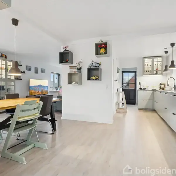 Indflytningsklar villa med stor have i Fuglebjerg Velkommen til Fuglebjerg, hvor denne moderniserede villa nu kan blive jeres. Der er tale om en charmerende ejendom med en god indretning og en stor have, som især børnefamilien vil sætte pris på. Boligen byder blandt andet på et flot køkken-alrum med stue i åben forbindelse samt et gæstetoilet, et badeværelse og to værelser. Den højloftede kælder supplerer med endnu et toilet, et vaskerum og to disponible rum. Huset er solidt bygget og præsenter