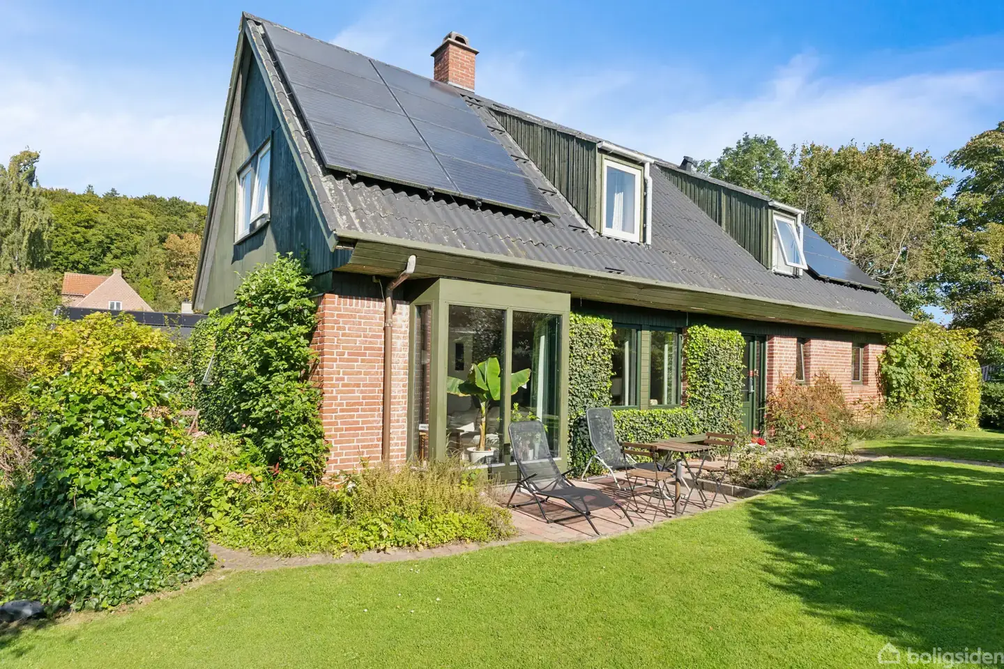 På et lukket vænge få skridt fra Hareskoven ligger denne rummelige og velisolerede villa på 192 m². Her får du store opholdsrum og fire værelser, hvortil der kommer en privat grund med solrige terrasser, frugttræer, drivhus og bæredygtige løsninger som solceller og regnvandsopsamling. Boligen er løbende opdateret, og inden for de senere år er næsten alle vinduer og døre blevet udskiftet, ligesom bøgehækken er blevet plantet i skellet. Beliggenheden er sublim med korte afstande til alle hverdagen
