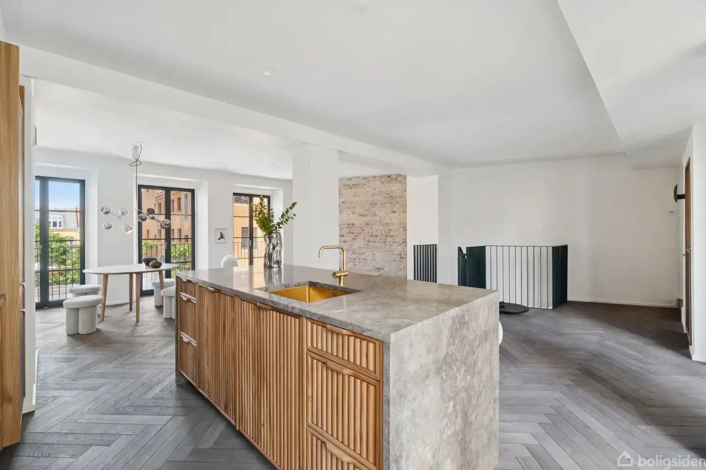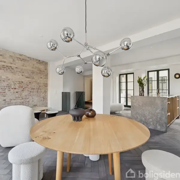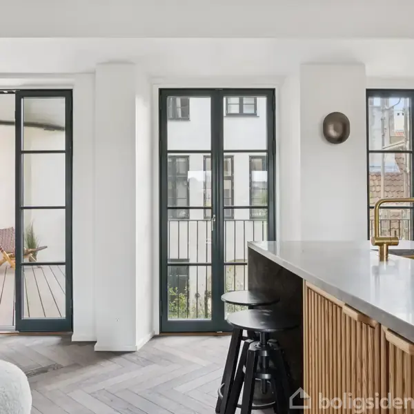 Det hele starter i stueplan, men strækker sig videre til første sal og en anvendelig kælder. Tre etager, der alle er gennemført ned til den mindste millimeter, udgør dette hjem, som også imponerer med sin private gårdhave og placeringen nær Kongens Have og Østre Anlæg. Køkken og badeværelser er med elementer fra Copenhagen Furniture Company, og de er udført i en kombination mellem linoleum samt massivt elmetræ - inklusiv de smukke fyldninger, som er deres signatur. I køkkenet er marmorbordplad