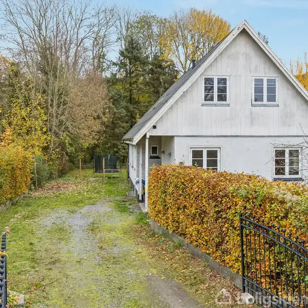 På adressen her får du en charmerende og velholdt villa, med direkte adgang til naturen, og hvor du samtidig ikke er langt fra alle dagligdagens fornødenheder.Huset rummer i alt 141 kvm boligareal som er fordelt som følger: entré, kombineret opholdsstue og spisestue, soveværelse (har tidligere været en del af stuen), mindre fordelingsgang som blandt andet fører dig til badeværelset, velholdt lyst køkken hvorfra du har adgang til et rummeligt bryggers. 1. salen byder på to gode værelser, et toile
