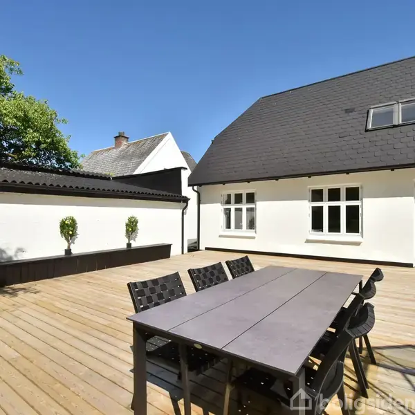 Denne flotte ældre villa har inden for det seneste år gennemgået en omfattende renovering og fremstår i særdeles velholdt stand. Facaden er vandskuret og hvidmalet, og det oprindelige eternitskifertag er renset og malet, hvilket giver huset et harmonisk og indbydende udtryk. Grunden er velanlagt og byder på en stor sydvendt træterrasse, der giver god plads til udendørs ophold og samvær. I forlængelse heraf er der opført en ny og rummelig havepavillon, som tilfører ekstra anvendelsesmuligheder til udelivet. Villaen er indrettet med en rummelig hall med trappe til førstesalen, et gæstetoilet, en forstue, samt et lyst og åbent køkken/alrum med direkte udgang til terrassen. I stueplan findes desuden en stor stue, og der er generelt højt til loftet i hele huset, hvilket bidrager til en god rumfornemmelse. På førstesalen finder man fire regulære soveværelser samt et stort, moderne badeværelse. Kælderen rummer flere anvendelige disponible rum og et praktisk vaskerum. Til ejendommen hører desuden en god garage med elport. Beliggenheden er central og yderst bekvem – med få minutters gang til både togstation, daginstitutioner, skole, idrætsfaciliteter og byens butikker. En indflytningsklar bolig med både charme og moderne komfort.
