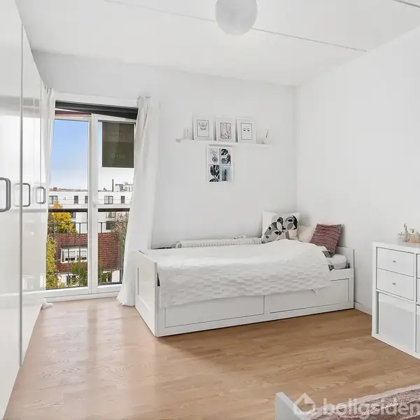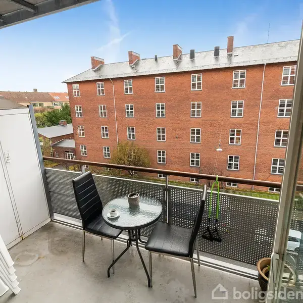 Lejligheden er beliggende i en klassisk rød murstensejendom med elevator, hvilket giver ekstra komfort i hverdagen. Ejendommen byder desuden på parkeringsmuligheder samt en hyggelig fælles terrasse omgivet af grønne arealer, hvor både afslapning og leg kan finde sted. I gården er der også cykelskur til beboernes brug.Boligen er en lys og velindrettet treværelses lejlighed placeret på fjerde sal. Planløsningen er gennemtænkt med entré, badeværelse og adgang til to rummelige soveværelser, hvoraf d